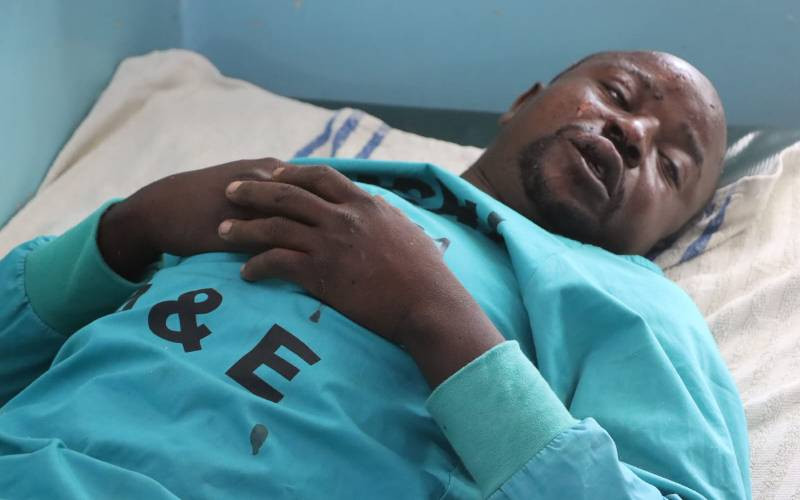 Francis Muteti, a turnboy of the lorry that hit a matatu, killing six in Mbooni. He is admitted at Makueni county Referral hospital.[Stephen Nzioka/Standard]