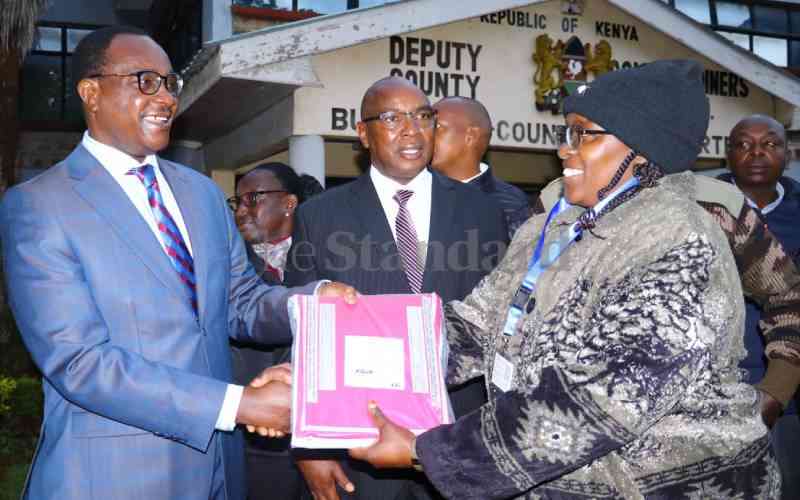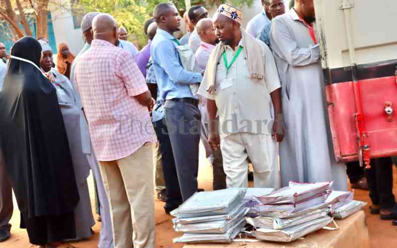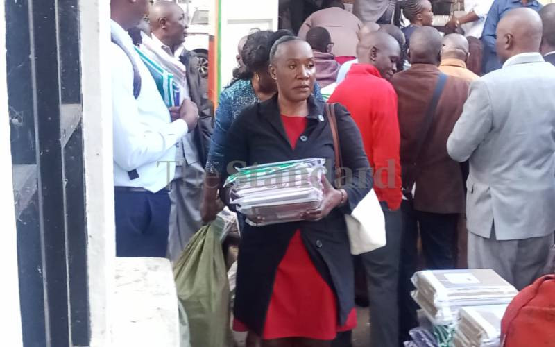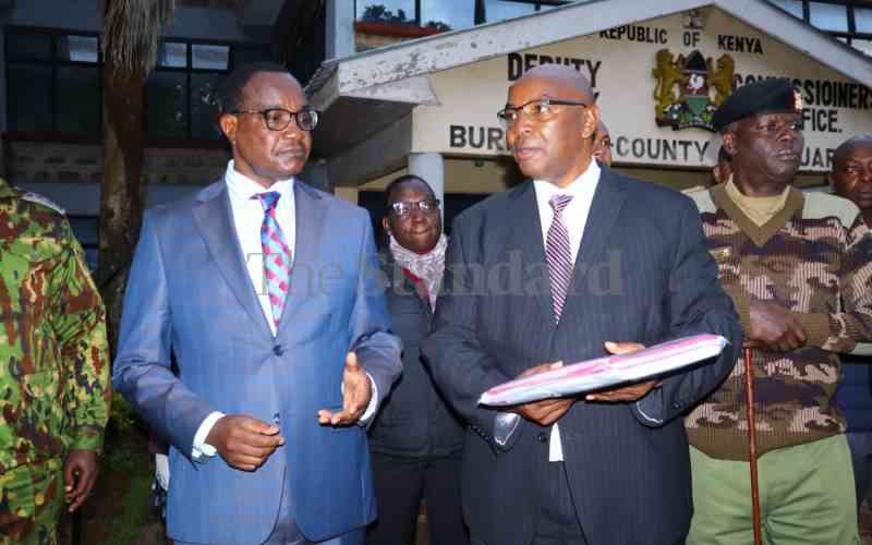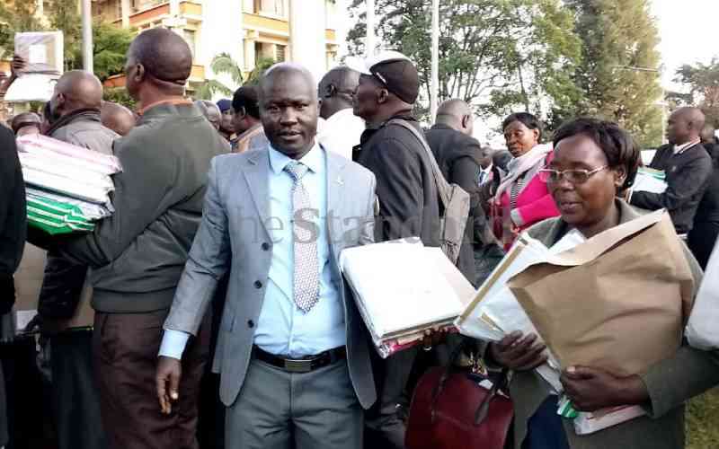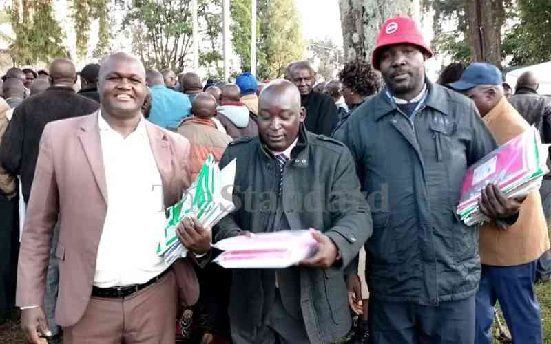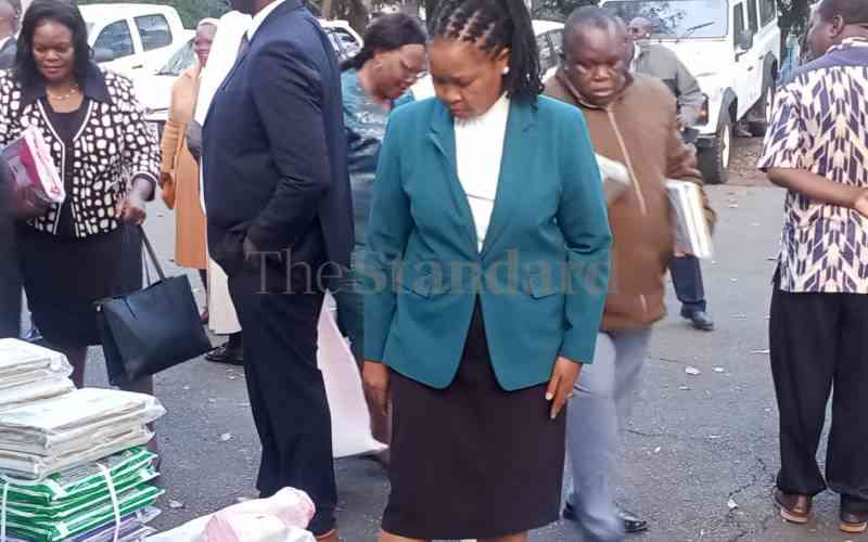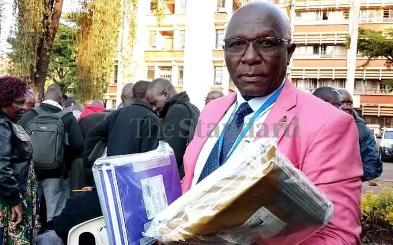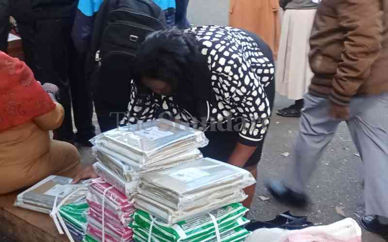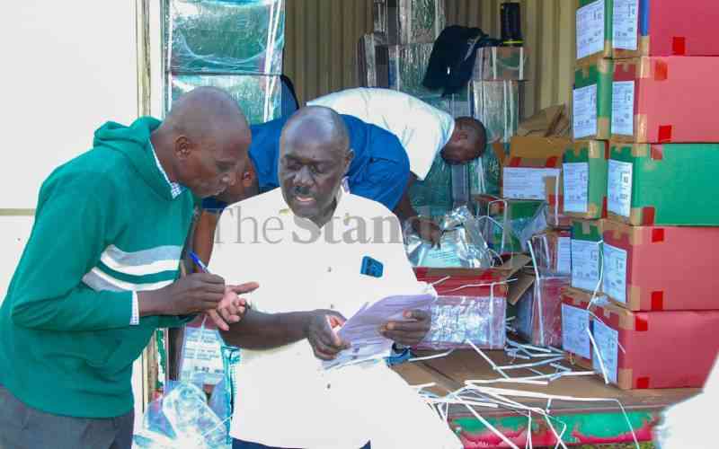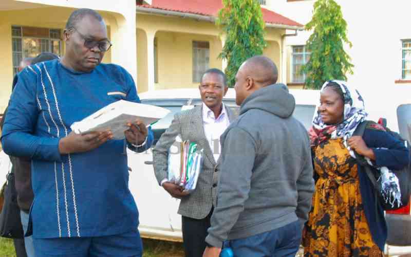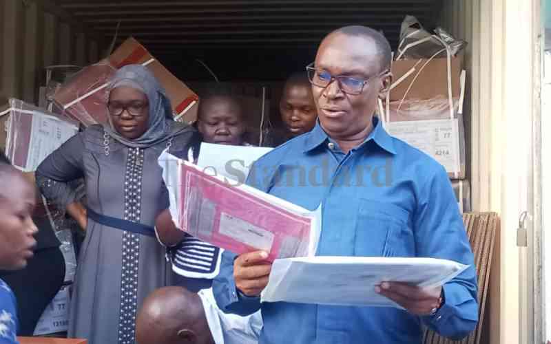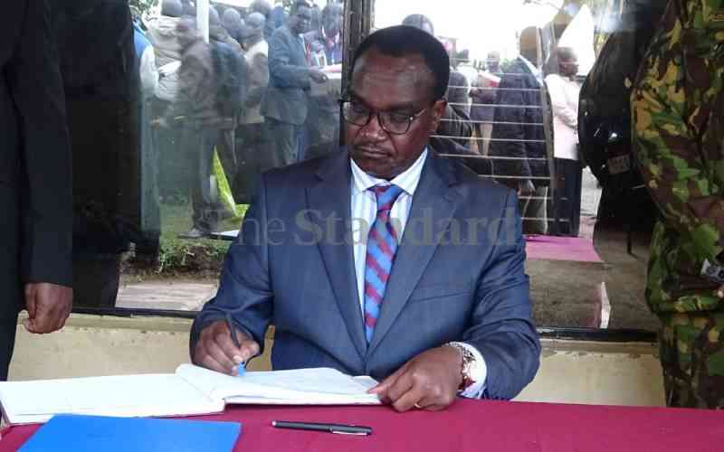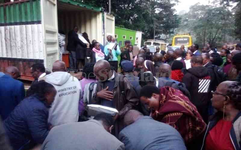 Education Cabinet Secretary Julius Migos Ogemba officiated at the opening of the Kenya Junior School Education Assessments (KJSEA), Kenya Primary School Education Assessment (KPSEA), Kenya Intermediate Level Education Assessment (KILEA), and Kenya Pre-Vocational Level Education Assessments (KPLEA) examination papers at the Bureti DCC office. [Nikko Tanui, Standard]