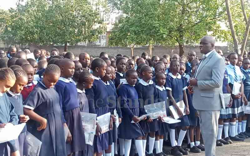 Candidates at Xaverian Comprehensive School in Kisumu were addressed by their Head of Institution George Pollo ahead of their KPSEA and KJSEA examinations.