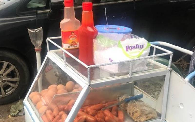 An egg/smokie trolley at a Nairobi street.[FILE]