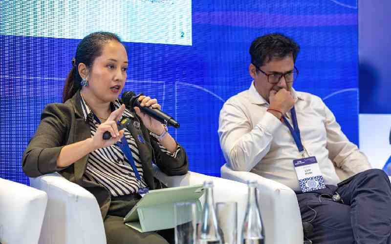Munira Mustafa, CEO, Chasseur Group research addressing an international sitting discussing Russia's war on Ukraine. [Wellingtone Nyongesa, Standard]