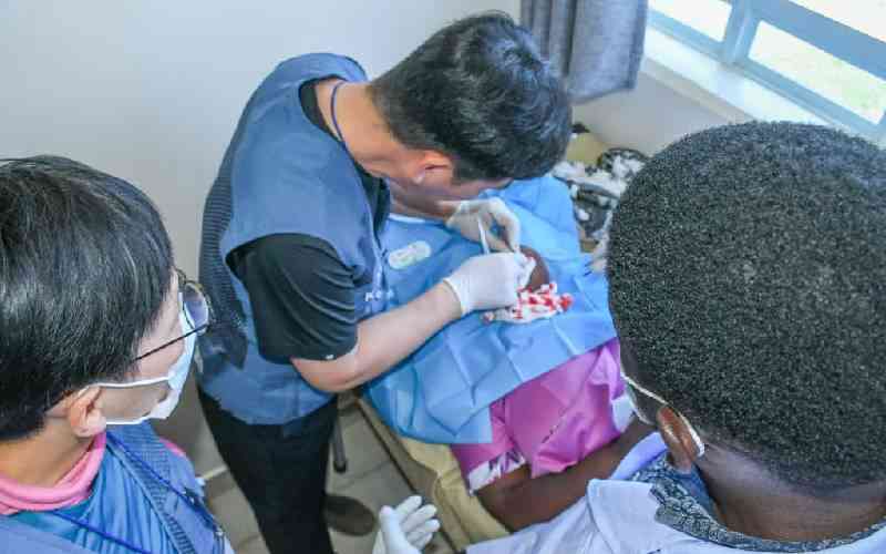 Doctors from South Korea's Kwangju Christian Hospital attend to a patient during a three-day medical outreach in Mogotio. [Kipsang Joseph, Standard]