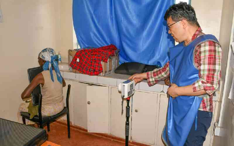 A doctors from South Korea's Kwangju Christian Hospital performs a procedure on a patient during a three-day medical outreach in Mogotio. [Kipsang Joseph, Standard]