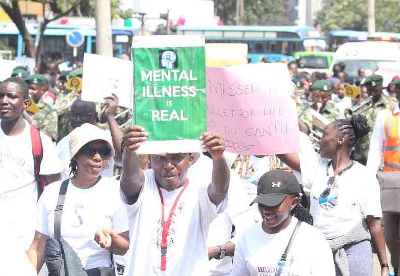 Members and partners of the Mental Health Champion initiative participate in an 8km suicide awareness and prevention walk in Nairobi on September 27, 2025. [Jonah Onyango, Standard]