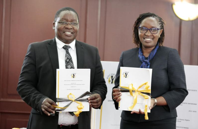 KNCHR CEO Bernard Mogesa and Ombudsman CEO Mercy Wambua during the launch of advisories on Human Rights Defenders in Kenya, Nairobi, September 30, 2025. [Boniface Okendo, Standard]