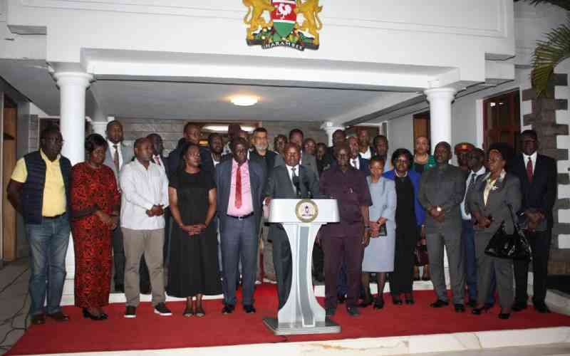 Deputy president Kithure Kindiki addressing the nation after first National funeral Committee. [Jenipher Wachie, Standard]