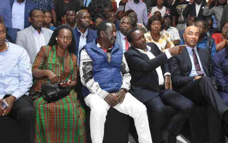 From left: Azimio leaders Martha Karua, Raila Odinga, Kalonzo Musyoka and former Gatanga MP Peter Kenneth during the hearing of the presidential election petition at the Supreme Court, on August 22, 2022. [File, Standard].