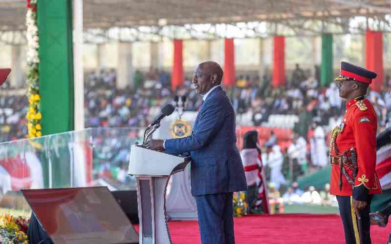 President William Ruto during Mashujaa Day celebrations at Ithookwe Stadium in Kituii, on October 20, 2025. [PCS]