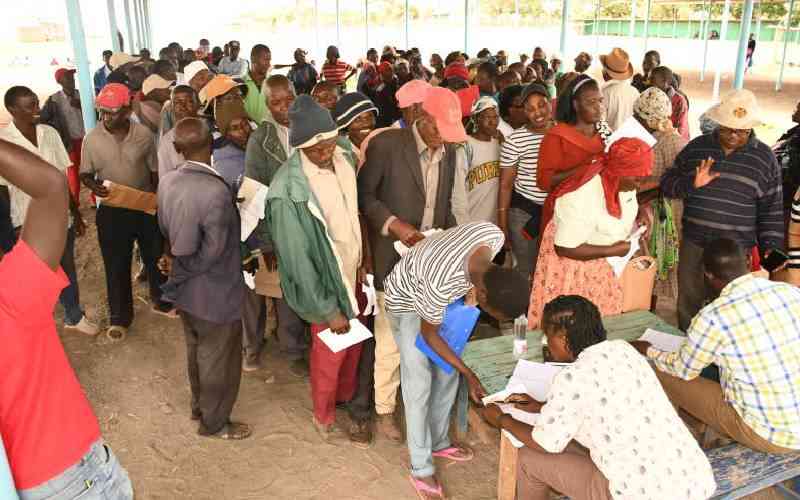 Banita Settlement Scheme settlers queue up for registration in Banita, Rongai constituency, on November 19, 2024. [File, Standard]