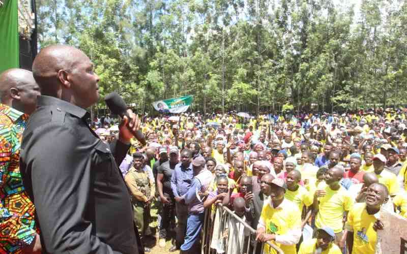 President William Ruto's aide Farouk Kibet addresses residents at Elunyinya village, Malava, on September 26, 2025. [Benjamin Sakwa, Standard]