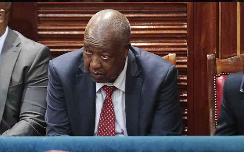 Kenya's Peter Abuti (right) and Njinnou Mouandat in past action. [Jonah Onyango, Standard]