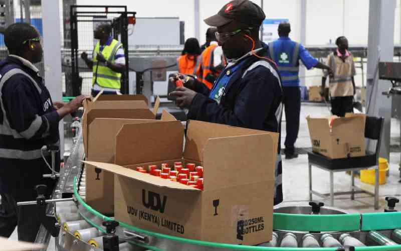 Beer processing chain in action during the Kenya Breweries Ltd (KBL ) Nairobi's plant tour. [File, Standard]