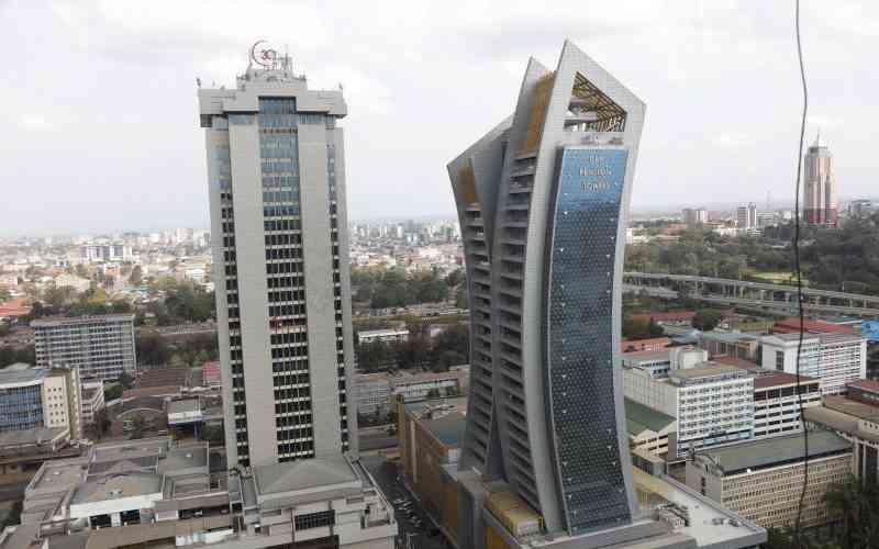 Times Tower and CBK Pension Towers Hrambee Avenue Nairobi.[Wilberforce Okwiri,Standard]