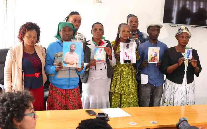 Families of victims killed during the 2024 Gen Z protests, after addressing the media at the August 7th Memorial Park, Nairobi, on June 20, 2025. [File, Standard]