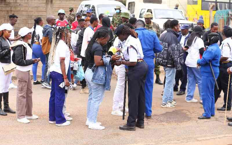 Kenyans go through security checks before a CHAN 2024 match at Kasarani Stadium. [File, Stadium]