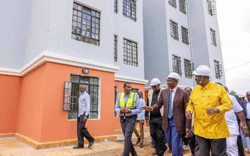 President Willam Ruto (second right) during inspection of the Boma Yangu Vihiga estate housing project in Vhiga county, on October 4, 2025. [PCS]