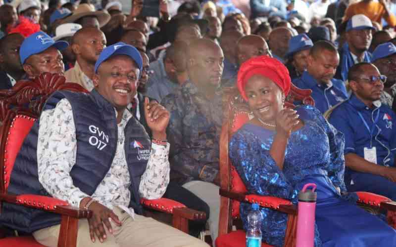 Senator Mutula Kilonzo Junior and Machakos Governor Wavinya Ndeti at Wiper’s NDC at Uhuru Park Nairobi on October 10, 2025. [Benard Orwongo, Standard]