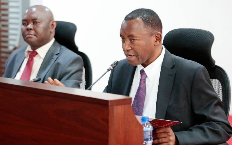 Sports Kenya acting Director General Gabriel Komora (right) and ADF Japheth Kaunyu when they appeared before the National Assembly PIC on Social Services Administration at Parliament Buildings, Nairobi, on October 1, 2025. [Boniface Okendo, Standard]