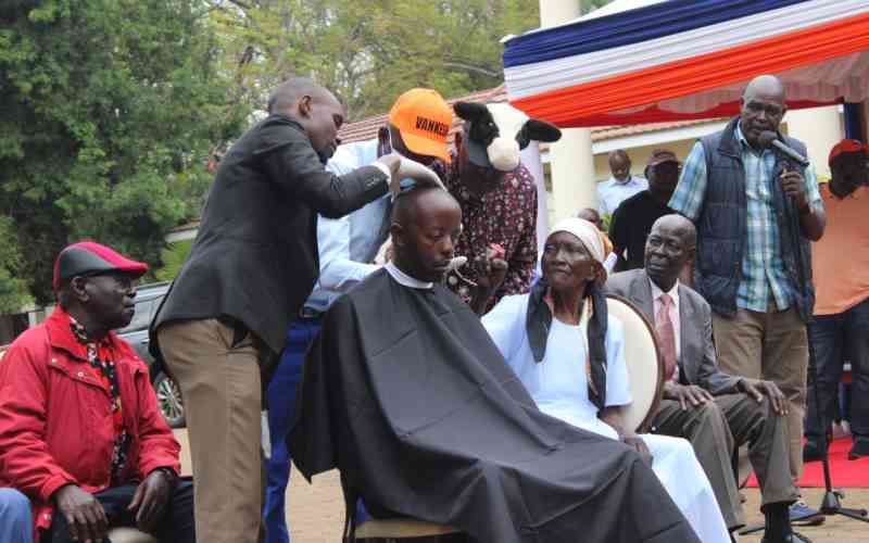 Raila Odinga Junior underwent a traditional hair-shaving ceremony at the family’s Opoda Farm home in Bondo Sub-County on October 23, 2025. [Rodgers Otiso, Standard]