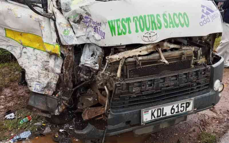 The 5:30pm accident occurred when a Bungoma Line Shuttle and a West Tours Sacco matatu crashed into each other after a boda boda rider allegedly entered the main road from a feeder path without checking for oncoming traffic.