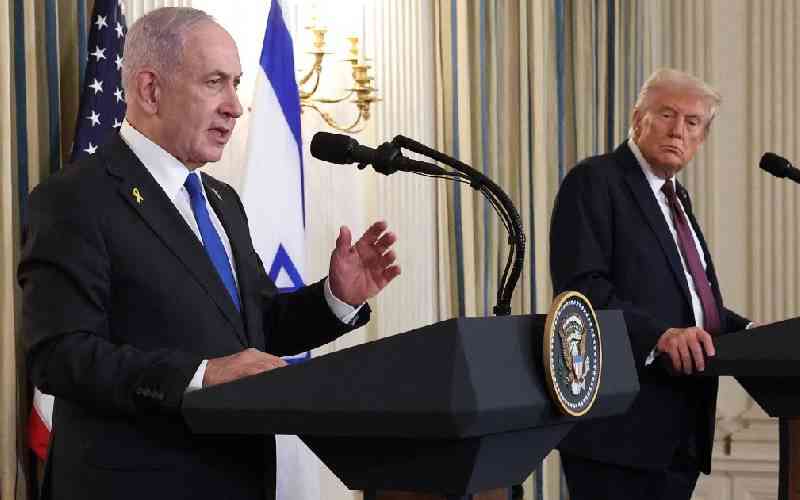 US President Donald Trump (right) and Israeli Prime Minister Benjamin Netanyahu during a joint news conference in the State Dining Room at the White House in Washington, DC, on September 29, 2025. [AFP]